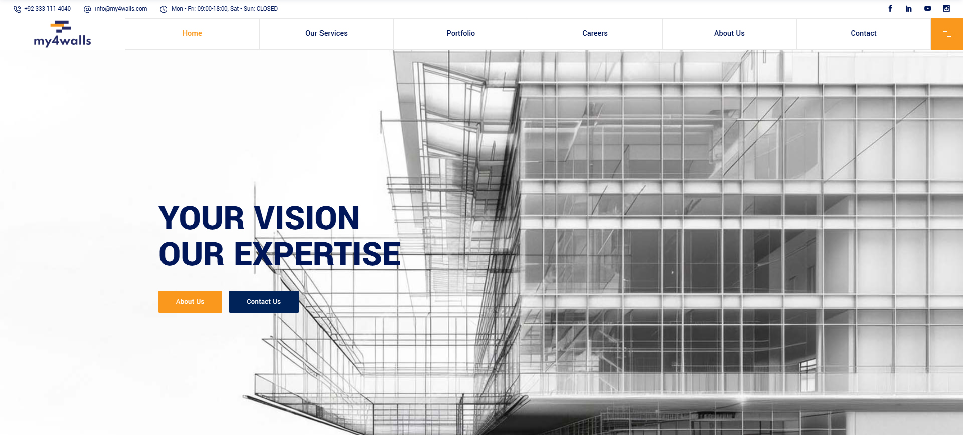 my4walls is a trusted construction firm known for delivering high-end residential and commercial projects with precision and integrity. Founded in London and based in Islamabad, it combines international standards with local expertise to create spaces that reflect quality, innovation, and reliability. From luxury farmhouses to modern mixed-use developments, My4walls builds with a focus on detail, design, and long-term value.